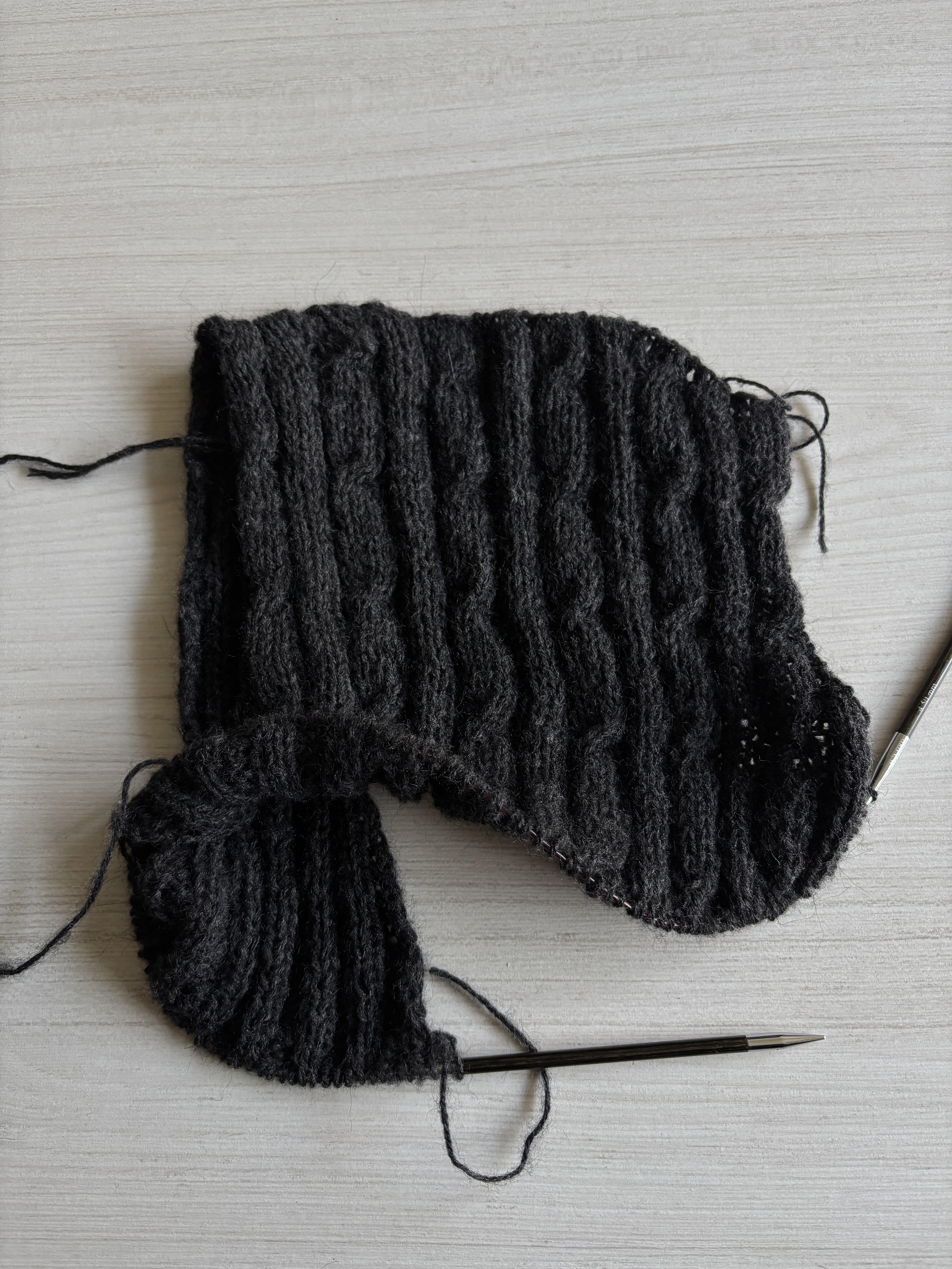 Este WIP me tiene especialmente emocionada porque estoy jugando con variaciones: en lugar de las trenzas originales, estoy probando con un diseño diferente que cambia la textura de la prenda. El color celeste le da un aire fresco y luminoso, distinto a otras versiones que he visto.